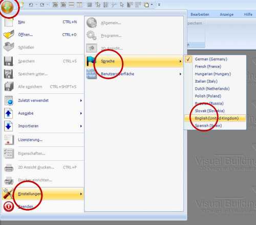Which ever language you select, you should be able to change the language at any time using the Application menu (Green top left arrow), then select Settings (Einstellungen), then Language ( Sprache) and then the language. This assumes you selected the new ribbon interface at install time. You will then need to restart the application for the change to take effect.