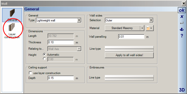 Double click on the wall to activate the Wall properties dialog: 1. Click on the Layer construction tab: 2. Click on the Material button: 3. Select 2D Display tab Select Monochrome and then the Fill colour. Select the Save as default and then OK so this becomes your default for future walls. Select OK for each open dialog. Using this method you can create many different wall styles: See also: Change 2D Wall style video |