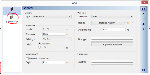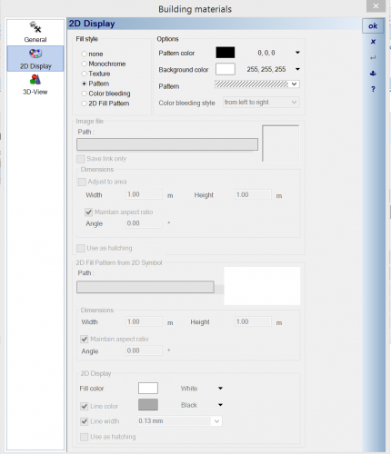 Hi, all resolved on the original query, thank you, but I am still puzzled about your documentation section 19.6.6, changing fill patterns in wall layers. You seem to have a dialogue box open headed 'Building Materials', but I can't get there through the Wall layer construction dialogue box - using the Visual Building 5.2 version.