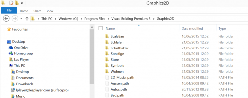 C:\Program Files\Visual Building Premium 5\Graphics2D for example Scalebars and that folder will then appear in the catalogue. Then copy your scalebar.cys file into the Scalebar folder. I will update the training documentation to clarify these points for future users. |